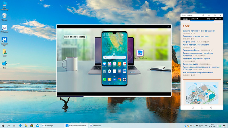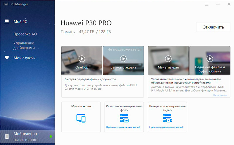 Вот на дисплее окно PC Manager и экран моего смартфона.