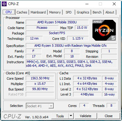 Процессор: AMD Ryzen 5 3500U 2,1 ГГц