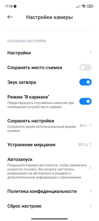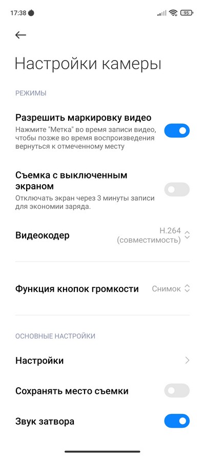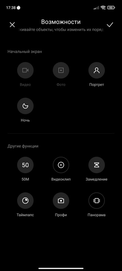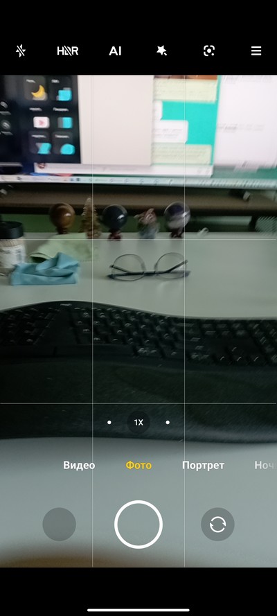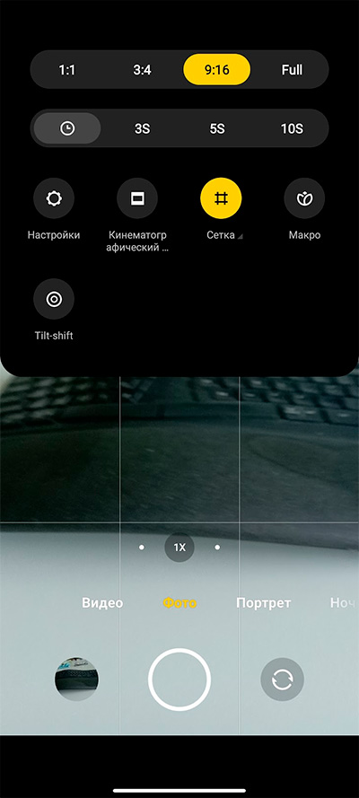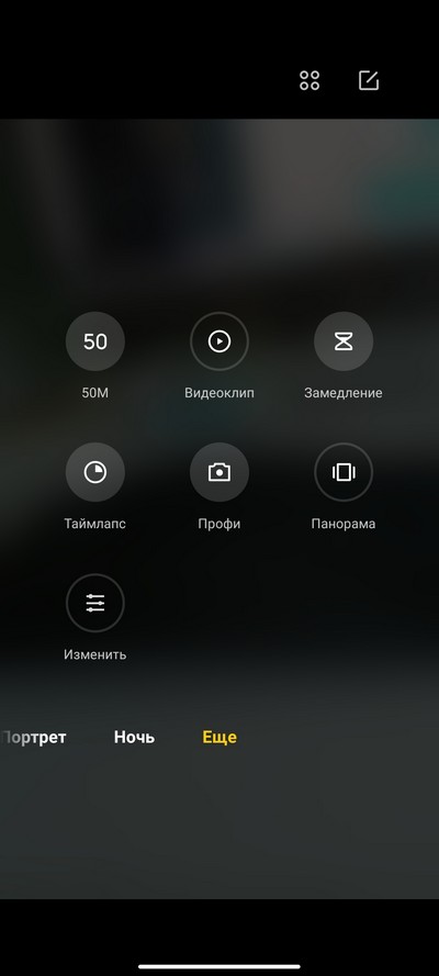 Стандартный интерфейс камер Xiaomi. Сверху - пиктограммы настроек и меню, снизу - переключение режимов.
