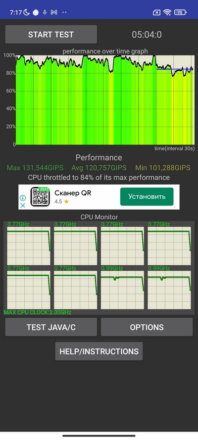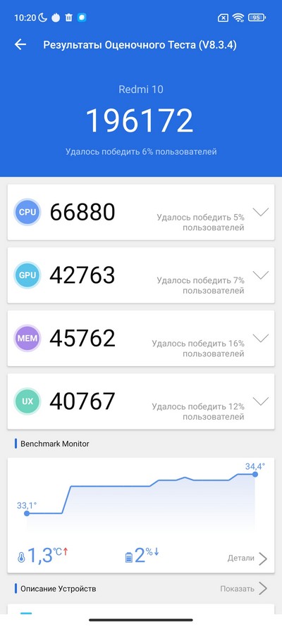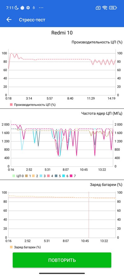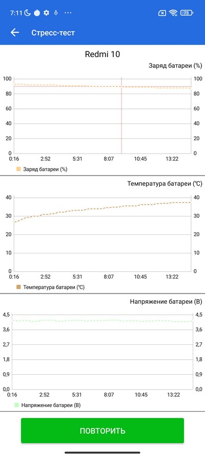 Стресс-тест AnTuTu. Температура батареи поднялась до 38 градусов, нормально.