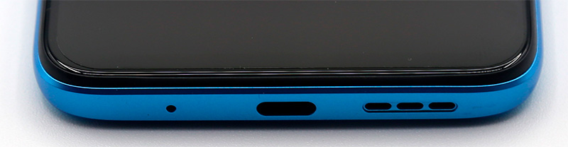 На нижней грани - микрофон, порт Type-C и прорези над стереодинамиком (в качестве второго динамика используется разговорный).