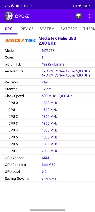 Mediatek Helio G88 это уровень Snap-6xx- все бюджетки строятся на этом поколении ARM