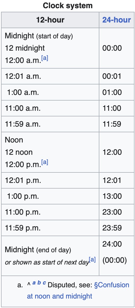 1 a.m., 10 a.m., 11 a.m., 12 a.m.