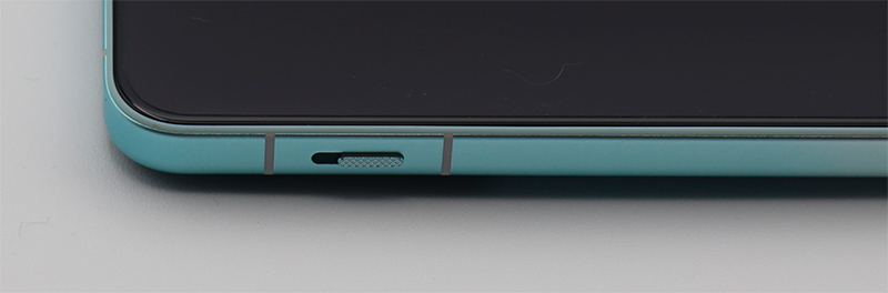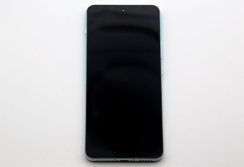 Лицевая часть. Края экрана абсолютно ровные, не скруглены. Корпус целиком изготовлен из алюминиевого сплава, что крайне редко встречается у смартфонов, поддерживающих 5G.