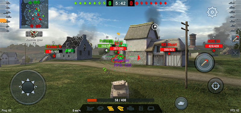 Танки с высокими настройками качества игрались без проблем, fps все время держался в районе 60-62.