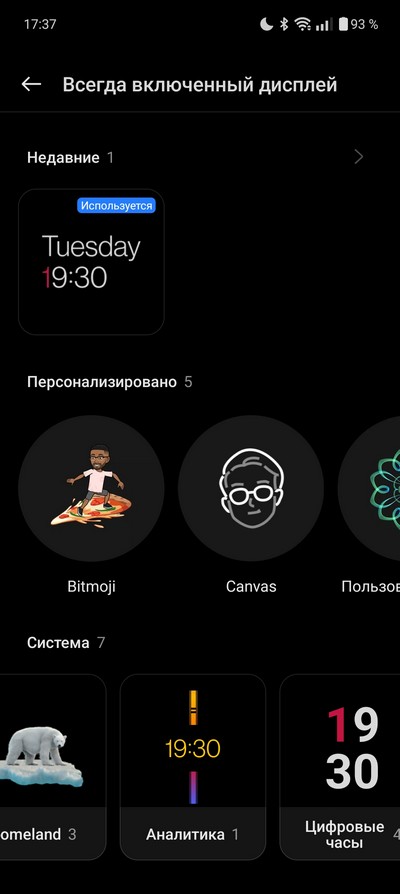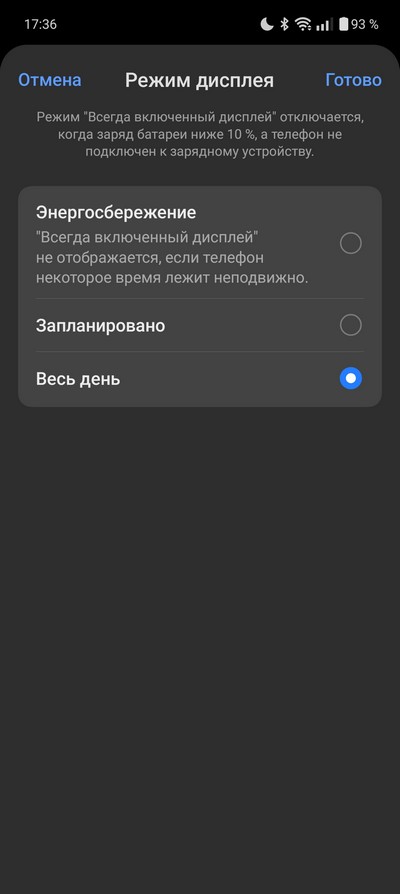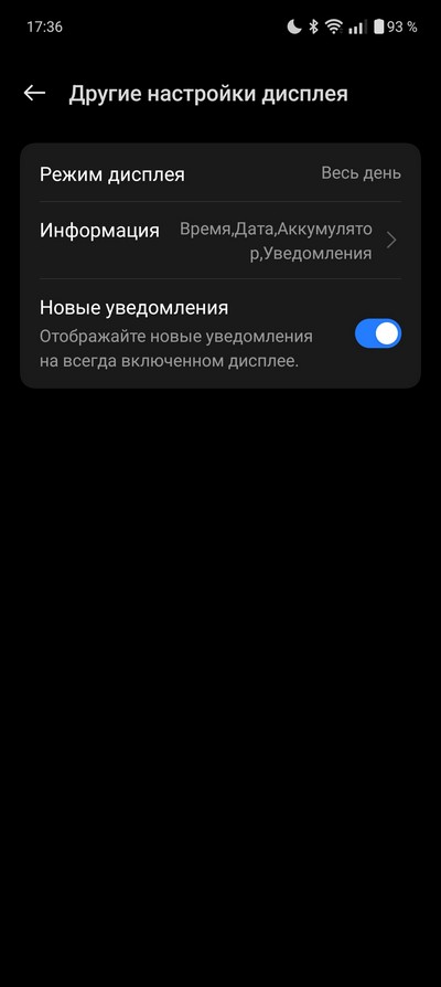 По умолчанию AOD устанавливается в режим энергосбережения, и экран гаснет через пятнадцать секунд. Однако это настраивается: если включить "весь день", то AOD будет полноценный, а то, что появляется на экране - можно настраивать.