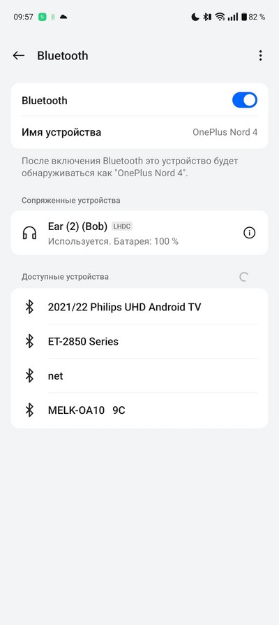 Для проверки беспроводного звучания подключил наушники Nothing Ear (2), они подключились по кодеку LHDC.