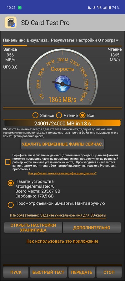 Флеш-память: 128/256/512 ГБ UFS 4.0