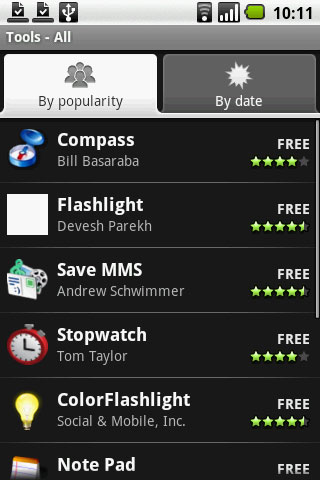 Отбор в Android MarketPlace реализован неплохо: программы разбиваются на две большие группы - приложения и игры, а в каждой из этих категорий также разбиваются на подгруппы. Внутри подгрупп вы можете просматривать приложения по популярности и по дате появления. Также есть возможность искать названия по текстовой строке.