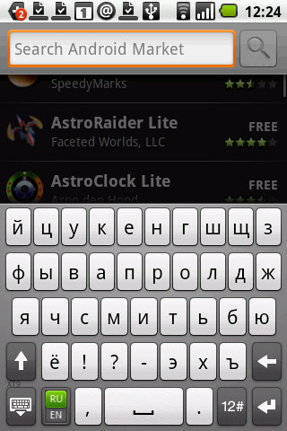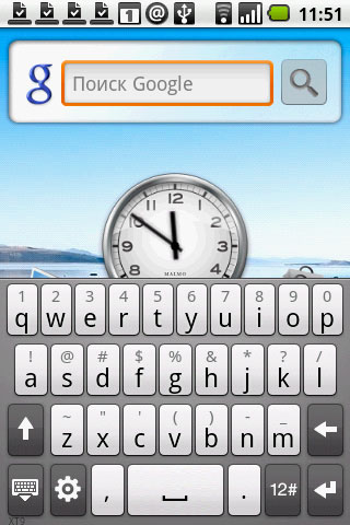 Удобство управления клавиатурой у Android, разумеется, сильно зависит от размеров экрана устройства. На HTC G1 клавиатура получается не особенно удобной для того, чтобы комфортно управлять ею пальцем.