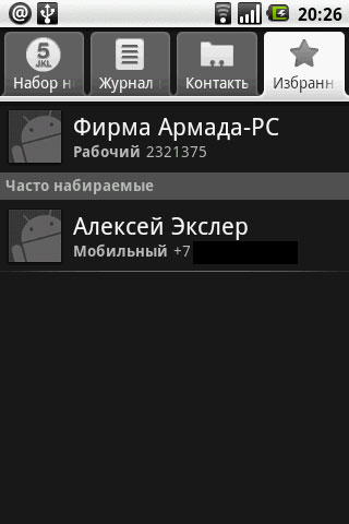 В раздел "Избранное" можно заносить любые контакты плюс там автоматически создается группа часто набираемых контактов.