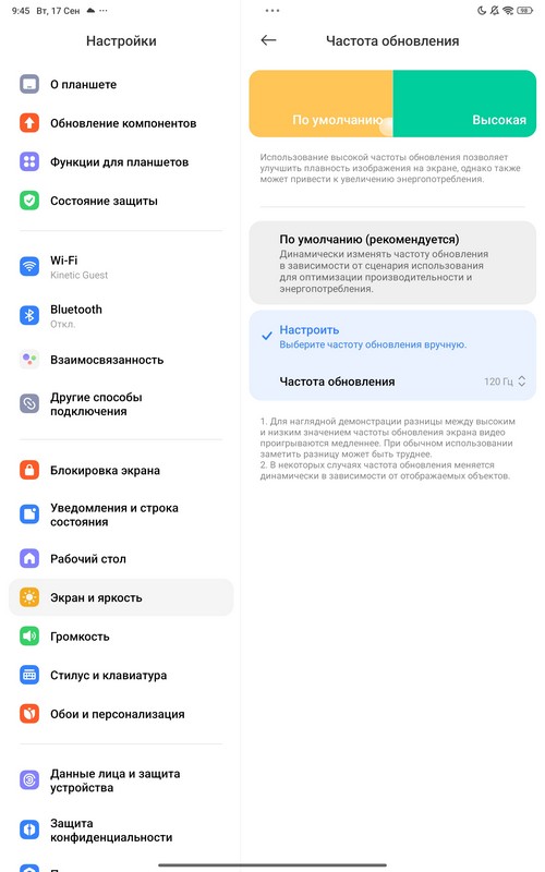 Частота обновления может настраиваться автоматически, а можно явно задавать одно из трех значений: 60, 90 и 120 Гц.