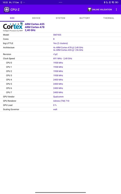 Процессор: Qualcomm Snapdragon 7s Gen 2 (4 nm), CPU Octa-core (4x2.40 GHz Cortex-A78 & 4x1.95 GHz Cortex-A55)