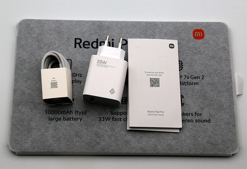 Комплект поставки: планшет, адаптер питания на 33 Вт, кабель, руководство пользователя, гарантийный талон.