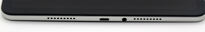 На нижней грани - отверстия над двумя стереодинамиками, порт USB и аудиовыход.
