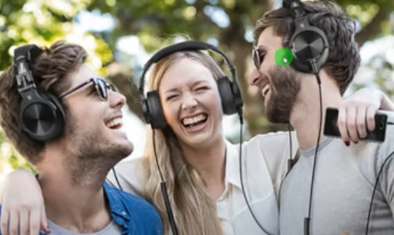 Ну да, оба персонажа стоковые, и наушники прифотошоплены (оттого и так криво сидят на головах).