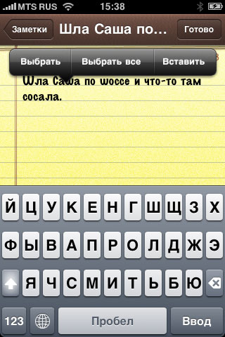 Причем, если вставку вы вдруг решите отменить, можно потрясти iPhone - и появится меню, с помощью которого от вставки можно отказаться.
