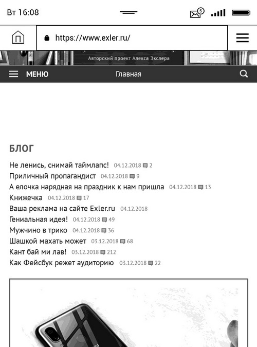 Браузер. Неторопливый, но пользоваться можно. Кстати, в нем теперь есть функция сохранения веб-страниц с последующим отображением в виде обычных книг в "Библиотеке" - это очень удобно: можно скачать при наличии Wi-Fi, а потом почитать в офлайне. Кроме того, в новой линейке ридеры стали немного быстрее - новая платформа и больше памяти.