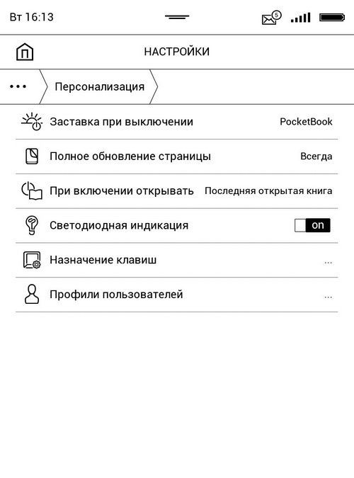 Здесь программное обеспечение несколько отличается от прошивки PocketBook 616, потому что там экран не имеет сенсорного слоя, а здесь - имеет.