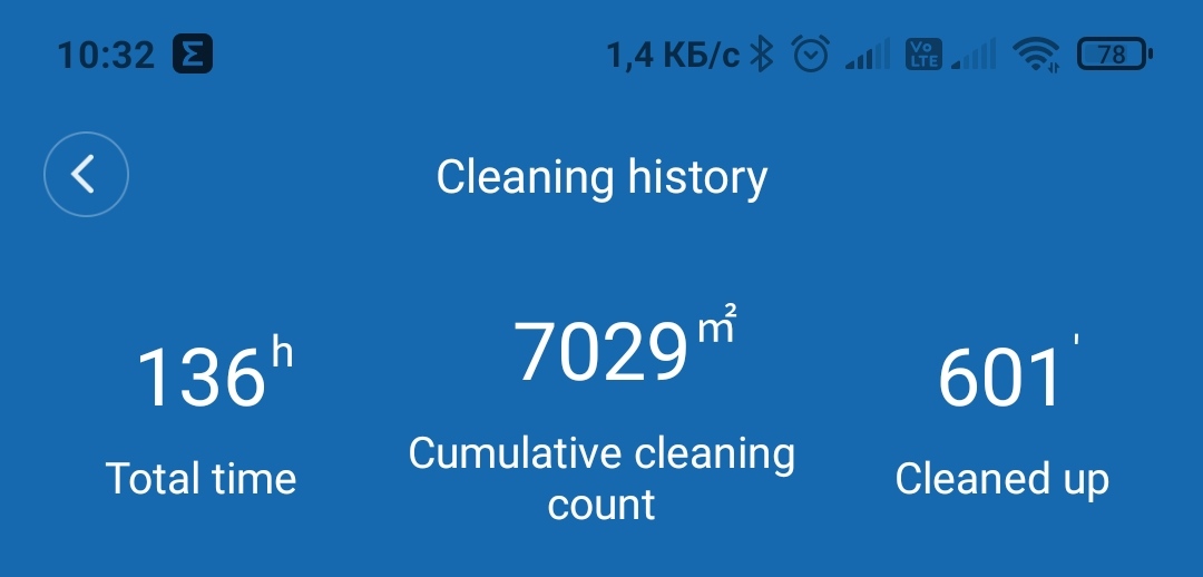 Также у него есть интересный режим подзарядки во время уборки - видимо, для очень больших квартир, потому что вообще он без подзарядки работает более полутора часов. Но если он все-таки не успел убраться, а уровень зарядки остался небольшой, тогда робот отправляется заряжаться до 80%, после чего заканчивает уборку. Но я этот режим проверить не смог: в моем доме самое большое помещение, гостиная с кухней, метров тридцать пять, и их данный робот-пылесос убирал где-то за 45-50 минут, так что подзарядка не требовалась.