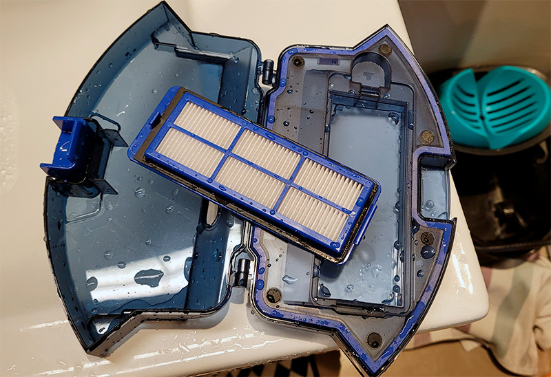 Контейнер и съемный фильтр быстро и легко промываются под струей воды, высушиваются бумажной салфеткой и снова устанавливаются в пылесос.