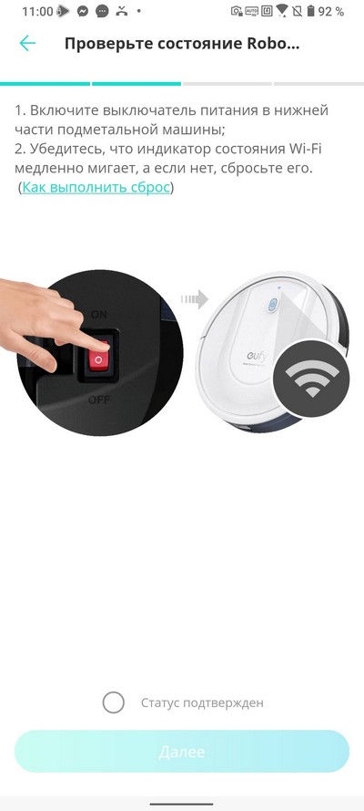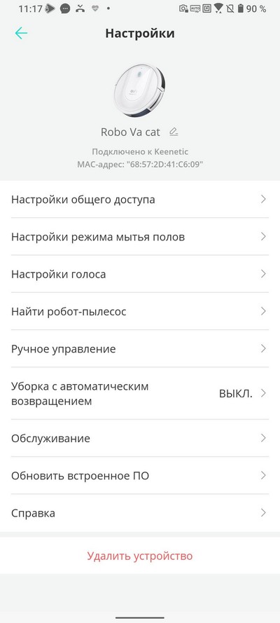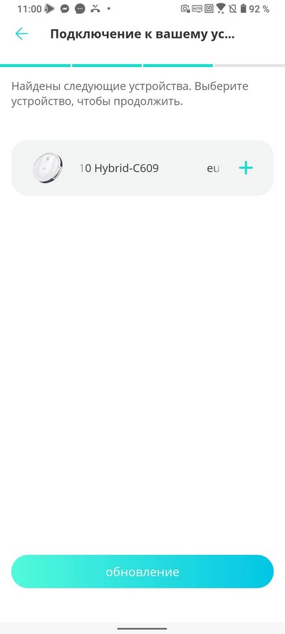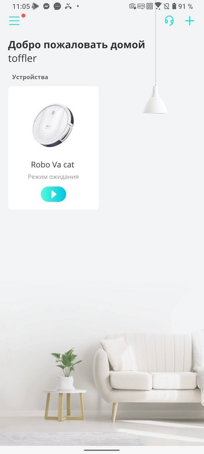 Работа приложения. Первичная настройка и подключение робота-пылесоса.