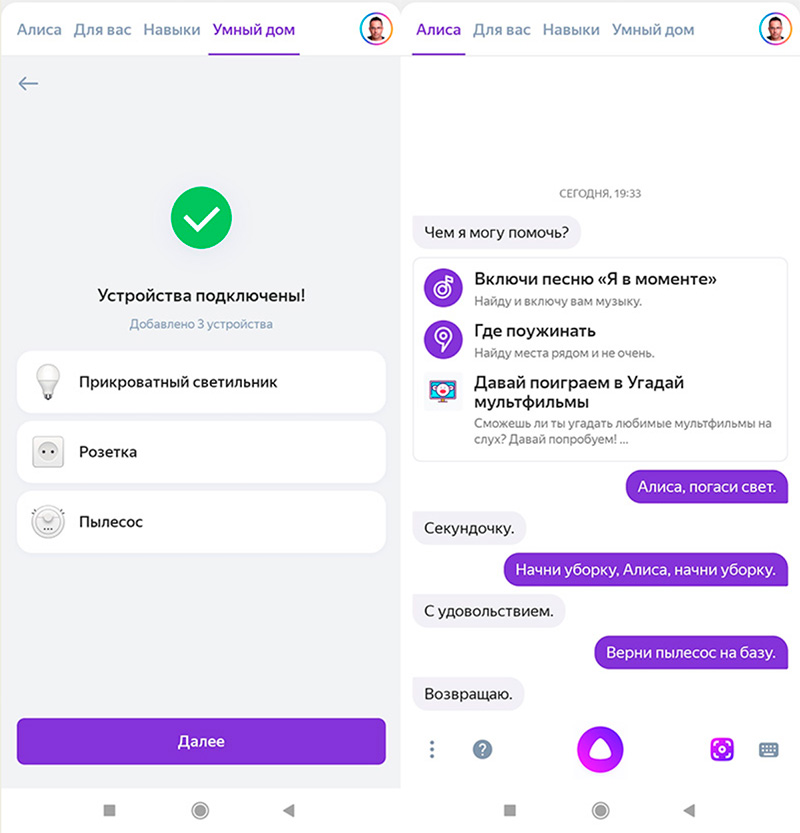 Голосовое управление: "Яндекс.Алиса", Alexa, Google Assistant