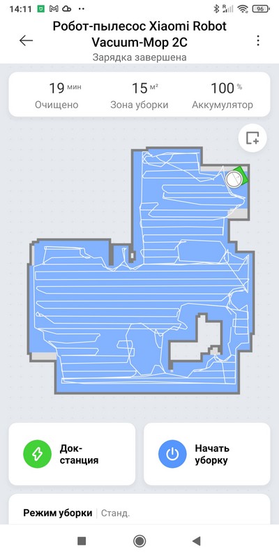 В динамике это выглядит как-то так (левый скриншот). На правом скриншоте - всё, уборка закончена, робот-пылесос вернулся на зарядную станцию.