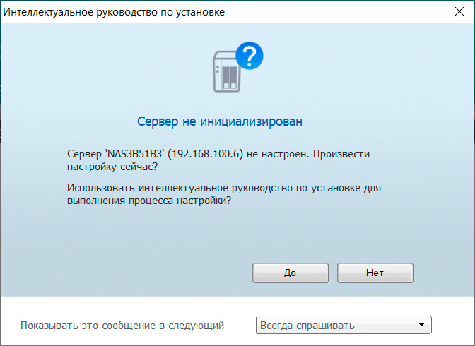 Однако если накопитель еще не инициализирован, то Qfinder Pro выдаст вот такое сообщение.