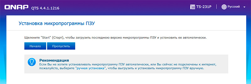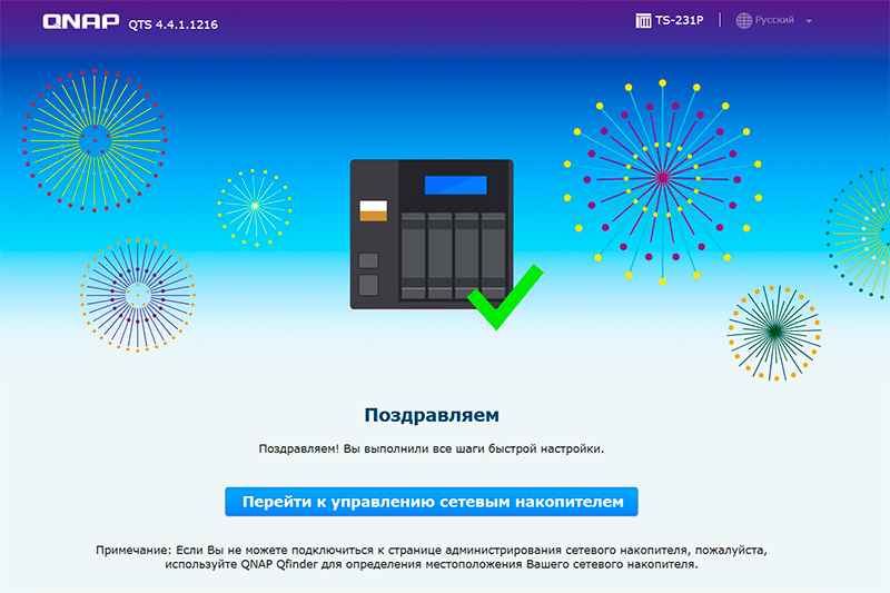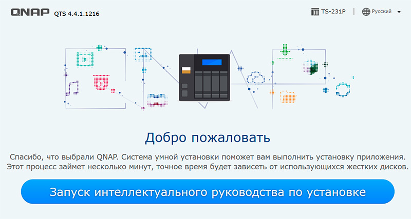 Нужно зайти на сайт install.qnap.com, там ввести код, указанный на устройстве, после чего инициализация накопителя будет произведена через облачный сервис.