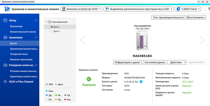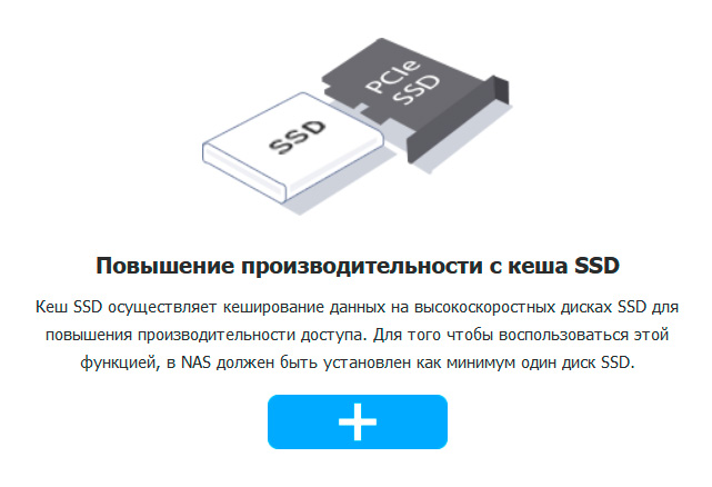 Если в NAS в качестве второго диска установлен SSD, то его можно использовать для кеширования данных и, соответственно, ускорения работы с основным диском.
