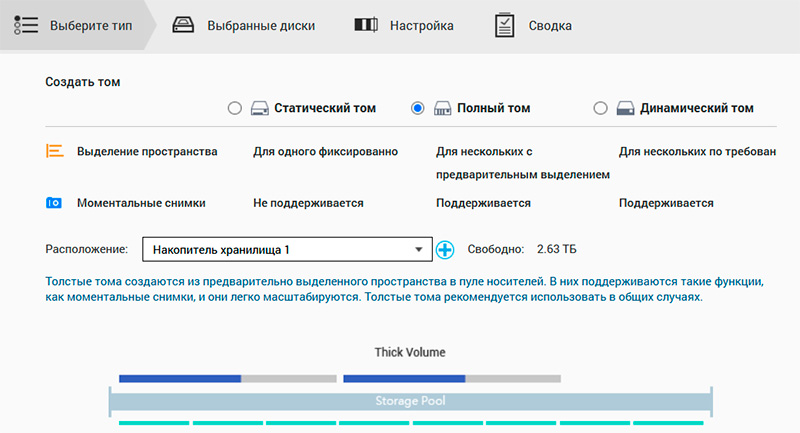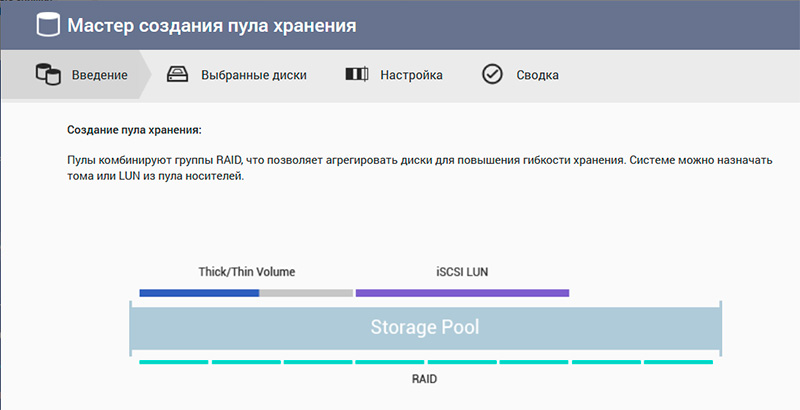 Пул хранения еще не создан, давайте его создадим в разделе "Хранилище".