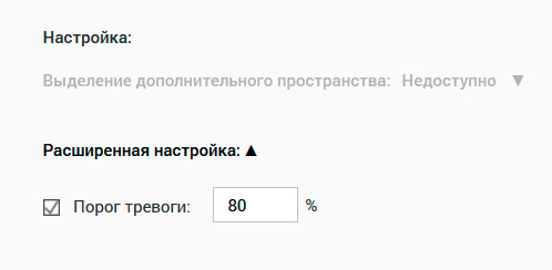 Порог тревоги - это сообщать при превышении заполнения определенного объема диска.