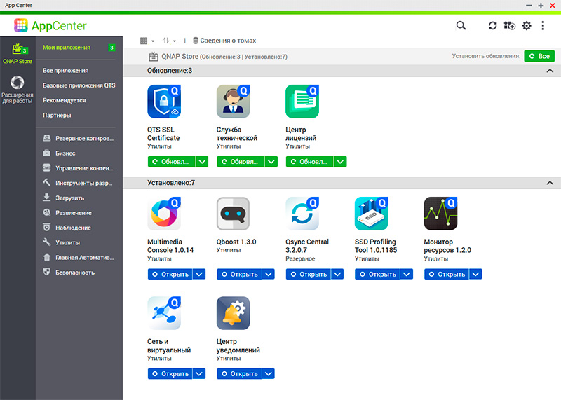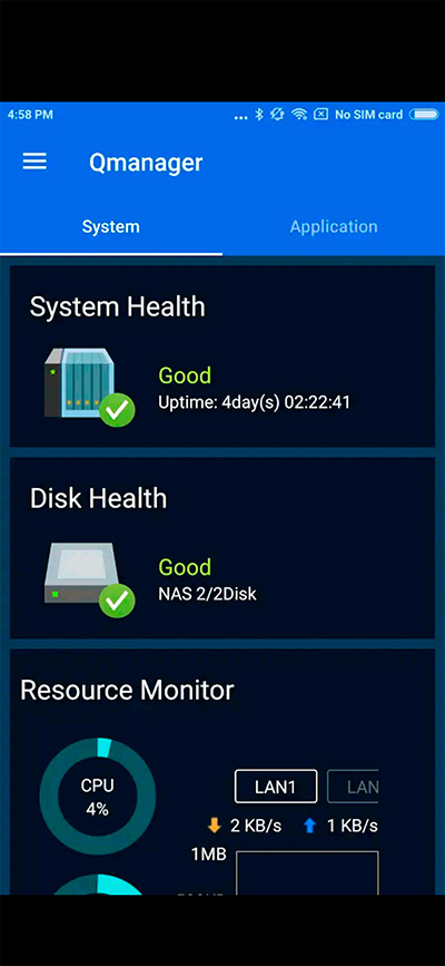 Различную информацию о работе NAS можно получать через приложение Qmanager. Также можно через это же приложение настраивать различные параметры.