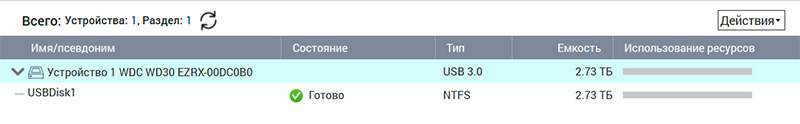 Подключил к NAS диск WD Green 3 TB в обычной док-станции через USB 3.0.