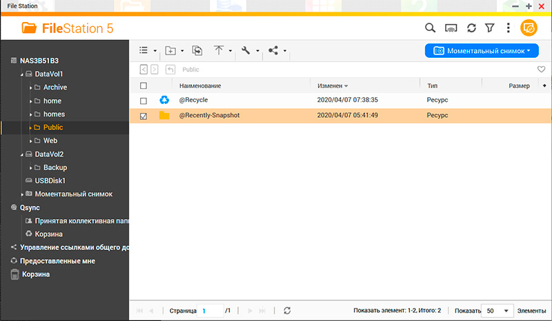 Файловый менеджер, позволяющий проводить различные операции с файлами непосредственно на NAS без задействования ПК.