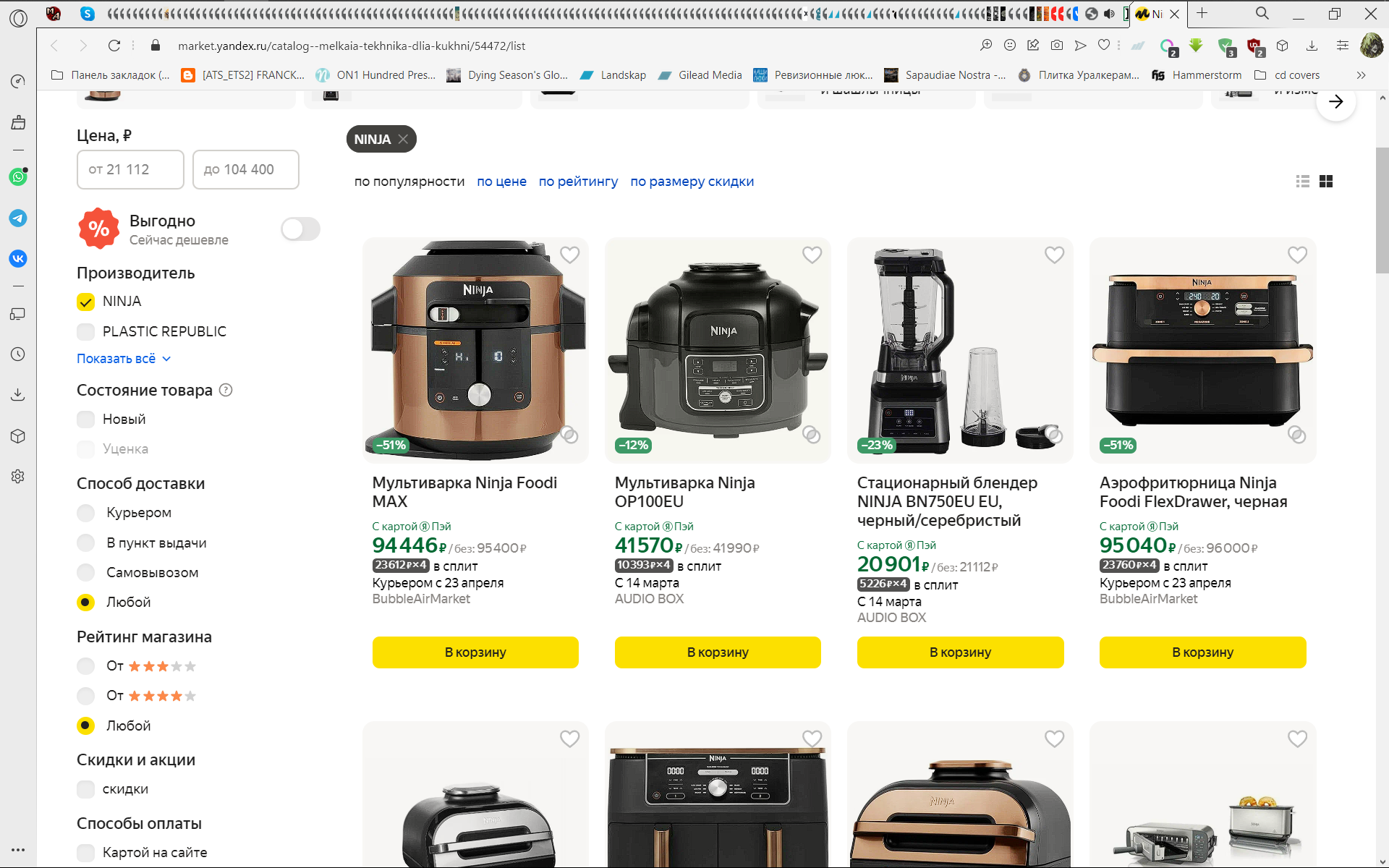 по ссылке на яндекс маркет открывается не конкретная модель, а просто все товары Ninja (у меня так во всяком случае)