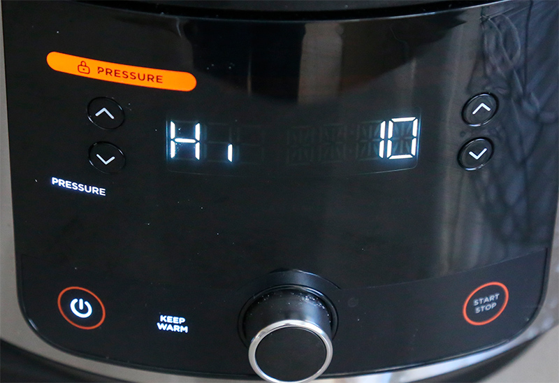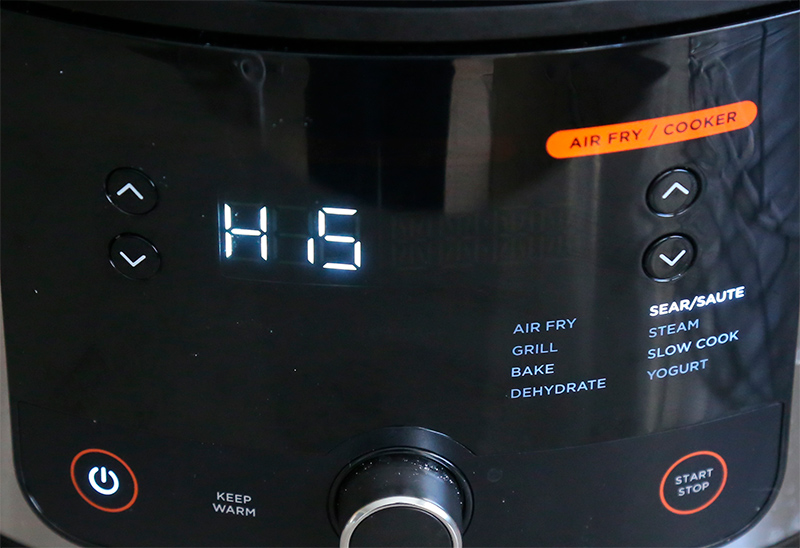 На панели управления видна кнопка Keep Warm (сохранять горячим). Она автоматически включается после приготовления на пару, под давлением пара или медленного тушения, и на кнопку нужно нажать, чтобы выключить сохранение блюда горячим.
