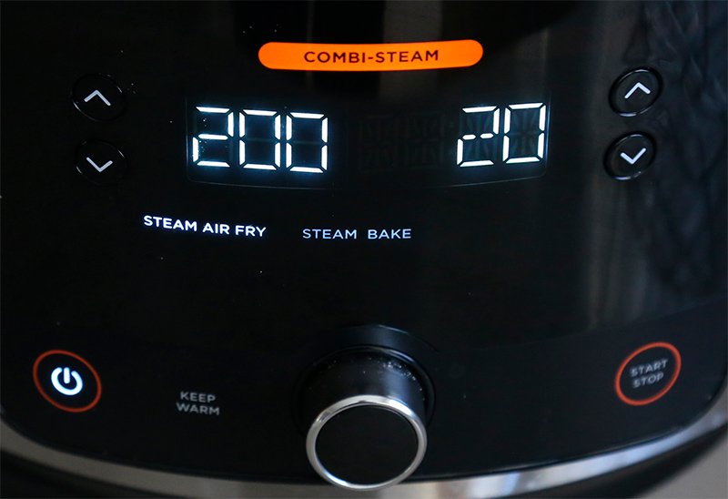 Теоретически и в режиме аэрогриля можно налить на дно чаши воды, и она через какое-то время приготовления тоже превратится в пар, но здесь режим ценен тем, что пар в готовке аэрогриля будет присутствовать с самого начала.