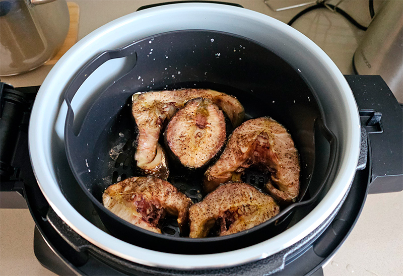 В этом режиме я делал только рыбное филе, которое в аэрогриле или в аэрогриле с паром пересушивалось.
