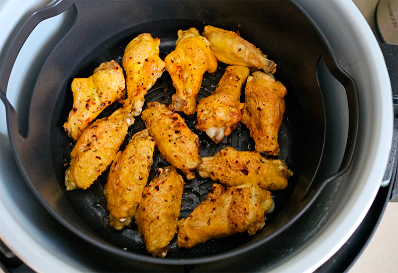 Самое классное блюдо в этом режиме - куриные крылышки, это вообще бомба! 230 градусов, 15-20 минут в зависимости от желаемой поджаристости. Посыпать специями (лучше всего - смесью фахитас) - и получается отлично, гости постоянно просят их сделать. Внутри сочные, нежные, при этом с хрустящей корочкой. Масло в процессе приготовления можно вообще не использовать, но я их слегка смазываю маслом перед готовкой.