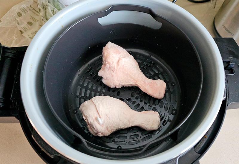 Ну хорошо, купил замороженные куриные голени, попробовал их приготовить. Не размораживал, просто положил в корзину.