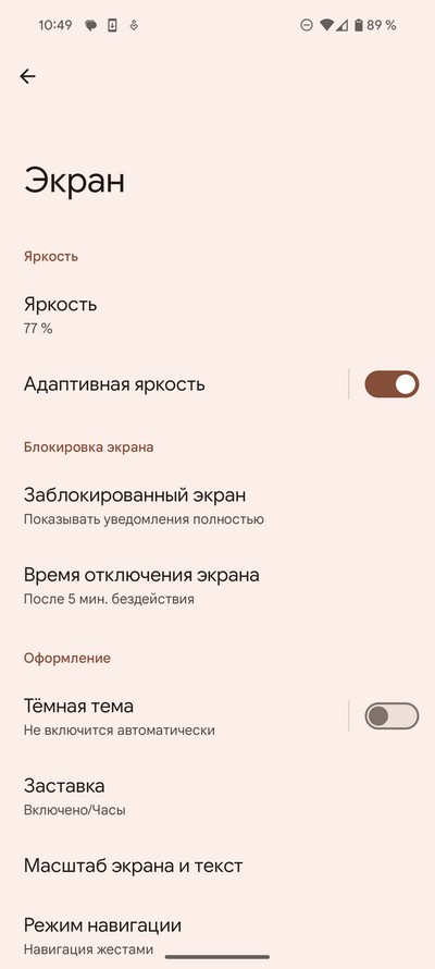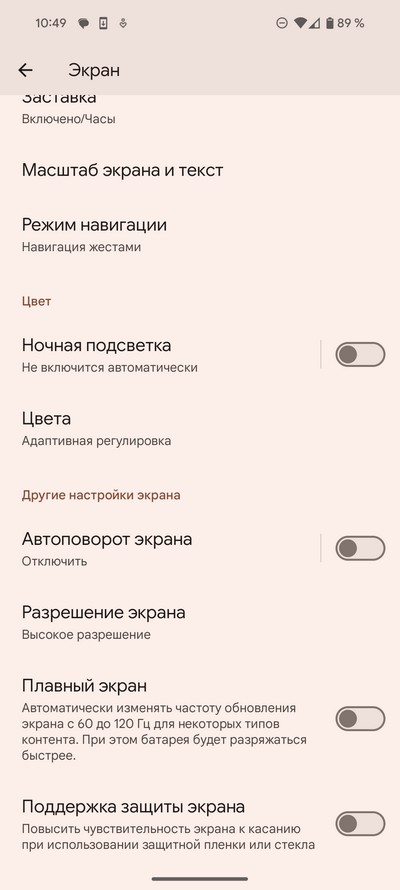 Настройки экрана. Тут нельзя принудительно выставить 120 Гц, но можно разрешить смартфону поднимать частоту так, как он считает нужным.