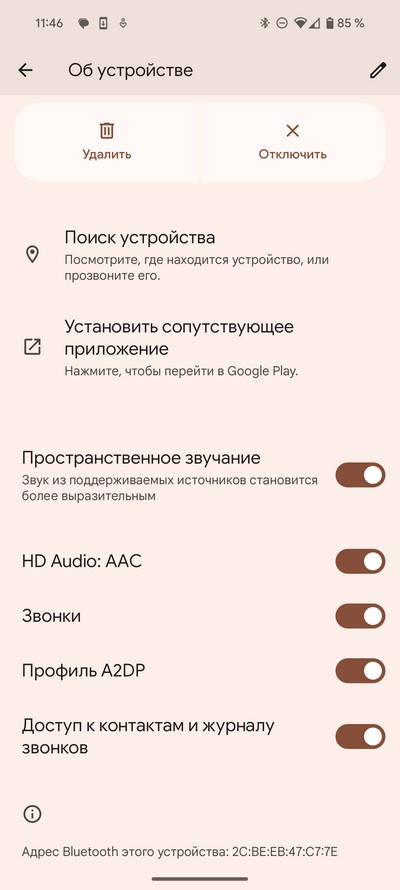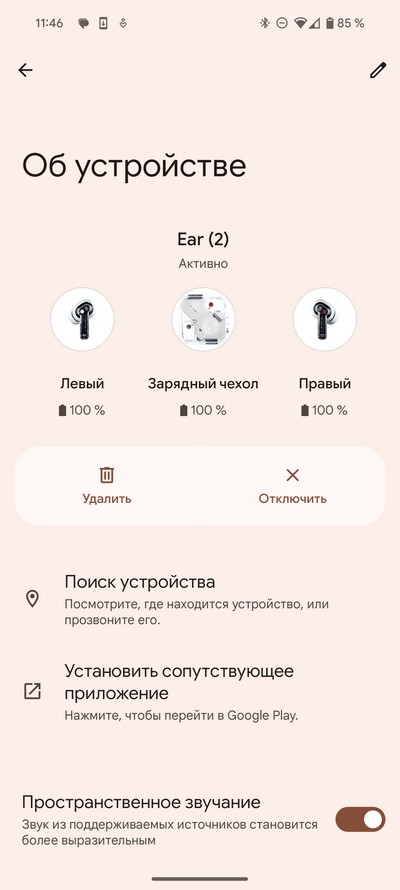 Для проверки беспроводного звучания подключил наушники Nothing Ear (2). Качество отличное: очень хорошие для затычек басы, уверенная середина, детальные высокие. Уровень максимальной громкости достаточный для использования на улице в шумном окружении.