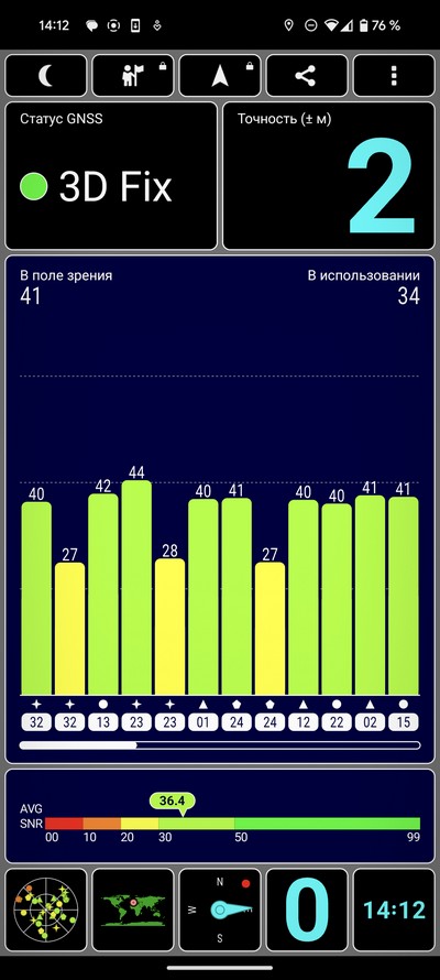 Навигация: GPS (L1+L5), GLONASS (G1), GALILEO (E1+E5a), QZSS (L1+L5)