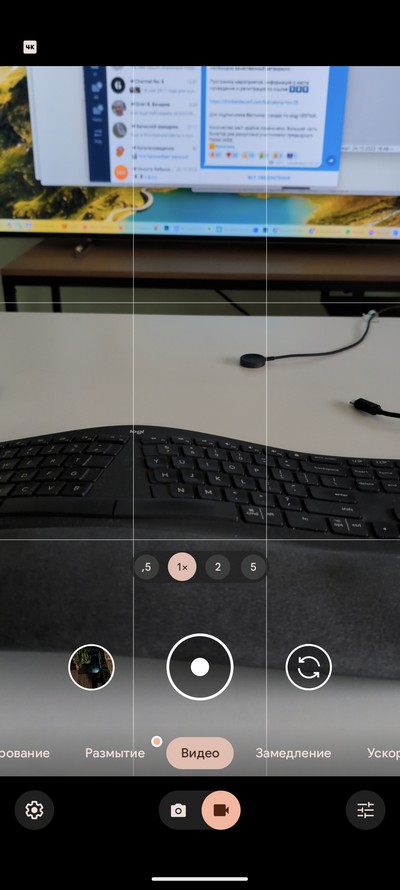 Причем здесь почему-то фото и видео засунули в один раздел, так что для съемки видео надо в разделе "Фото" нажать на значок видеокамеры. На черта это вообще сделано - непонятно совершенно, раньше было удобнее.