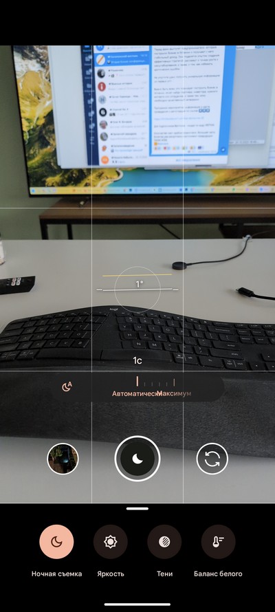 Ночная съемка с настройками. Там можно задавать выдержку от 1 до 3 секунд.