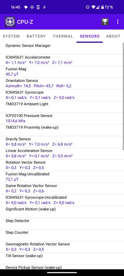Дополнительно: акселерометр, гироскоп, датчик геомагнитный, датчик освещенности, компас, барометр, термометр