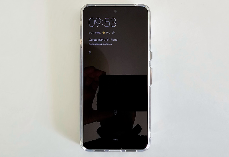 AOD (режим постоянно включенного экрана) здесь полноценный, выглядит это вот так. Кстати, его настройка не слишком очевидная: в разделе "Экран" нужно искать "Показывать время и информацию".