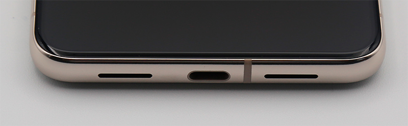 На нижней грани - порт Type-C и две симметричные прорези, под правой из них скрывается стереодинамик (в качестве второго динамика используется разговорный), в левой находится микрофон.
